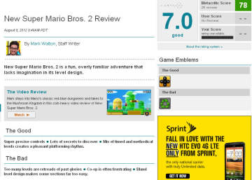 《新超级马里奥兄弟2》外媒评价7分 关卡缺乏创造力 来源: 飞翔小编 2012/8/13 16:19:40 浏览量:383 再过不久美版的3DS《新超级马里奥兄弟2》就要发售了,外媒gamespot的编辑最近就给该作打了7分的评价(十分制),认为新超级马里奥兄弟2是一款极度具有知名度并且有趣的冒险游戏,不过关卡设计缺少一些创造力。 优点 1.精准的操控 2.大量隐藏要素可探索 3.混和计时且有条理的关卡创造出一种愉快的平台跳上窜下的律动体验 缺点 1.太多的关卡设计了无新意 2.合作模式令人无力吐曹 3.平淡无味的关卡设计让部分区段显得过于单调