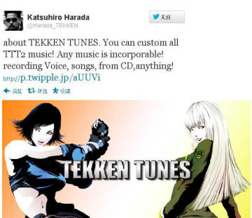 铁拳系列制作人原田胜弘近日在其维特上宣布即将发售的家用机版《铁拳TT2》将支持自定义音乐,也就是说玩家可以把自己喜爱的音乐先拷入PS3和XBOX360上,在到游戏模式中选择调用家用机上的音乐就可以了。所以在游戏对战时即使听到《最炫民族风》也不要大惊小怪了。