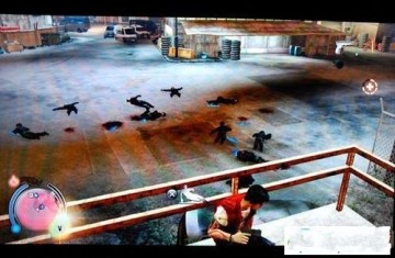 2. 把警察招来之后, 就躲在这个栏杆后面, 尽情射击吧. BUG就是, 这个栏杆是射不穿的, 躲在后面不伤血.