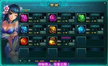 十五层过后,又到了遇上神秘商人的时候了,有图有真相,3级宝石和钱袋,实在是太便宜了,3级宝石镶嵌在装备上,战力,防御提高,你懂的!