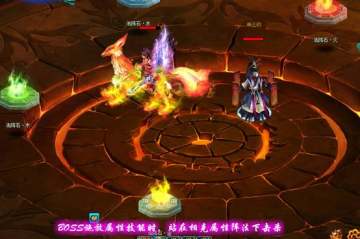 第五关:BOSS会随机释放五行属性中的技能,当BOSS施放的时候,只要跑到施放技能属性的相克属性阵法旁边,继续击杀BOSS就好了。(木克土,土克水,水克火,火克金,金克木)