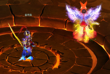 第十四关:这个BOSS会放两招技能,一招是追魂金光阵,就是放一个圈圈,在圈圈内会持续的狂掉血,只要抛开就没事了,一招是金光符,会给BOSS加一个状态,提升2000普通战力,只要把符咒打碎后,就好了。