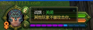 在阵营PK中,玩家只能攻击那些开启了战旗的敌对阵营玩家。开启/关闭战旗的图标在角色头像上。此外,当角色主动攻击敌对阵营的玩家时,自己的战旗会自动开启。在战旗开启的状态下打怪和做任务可以获得额外的经验奖励。