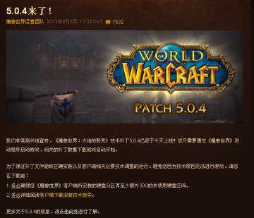 魔兽世界5.0终过审核,将于近日正式上线,国服有望与世界同步 来源: 飞翔小编 2012/9/6 8:17:23 浏览量:258 版本与世界脱节一直是国服玩家心中永远的痛,近日小编在文化部网络游戏查询系统惊奇的看到,魔兽世界最新的5.0资料片熊猫人之谜已于2012年9月5日通过审核,同时魔兽官网也放出5.0正式上线的消息,这是否意味着国服有可能成功与与世界同步开放新版本?我们将拭目以待。