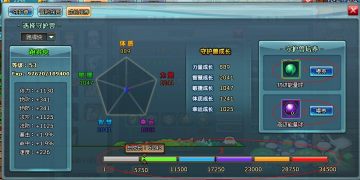 3号位置,总成长栏,总成长影响守护兽品质,分为白色,绿色,蓝色,紫色,橙色,红色(品质其实也就是名字颜色变变,视觉感觉舒服点,不过成长越高,属性越高这点是一定的拉)