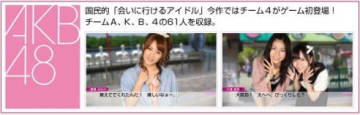 AKB48:国民的“想见就能见到的偶像”本作中TEAM 4初次在游戏中登场。这次共收录TEAM A、K、B、4总共61名偶像。