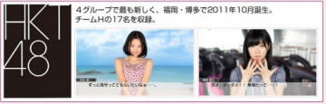 HKT48:四个团体中最晚成立的,2011年10月再福冈、博多诞生。这次共收录TEAM H总共17名偶像。