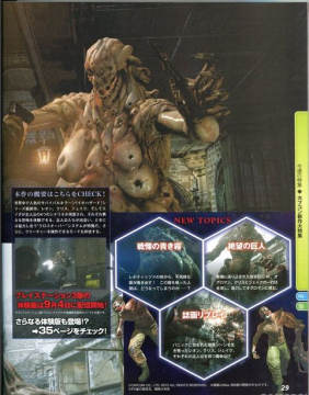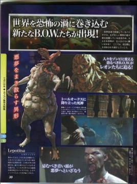 《生化危机6》新生化敌人Lepotitsa和Ogroman公布 来源: 飞翔小编feichenpan 2012/9/7 10:42:16 浏览量:2077 Capcom恐怖游戏大作《生化危机6》将在9月的东京电玩展上提供最新的试玩,根据最新一期游戏杂志Fami通的爆料,本作的新生化敌人Lepotitsa和Ogroman,其中Lepotitsa从其身上的肉瘤中释放出像雾一样的气体会使人丧尸化,里昂篇总统演讲现场发生生化事件的元凶就是它,而Ogroman为东欧语言,意为“巨型身躯”。 游戏杂志图: 《生化危机6》预定于2012年10月2日发售,登入PS3和XBOX360平台,稍后登入PC平台。