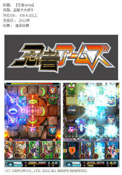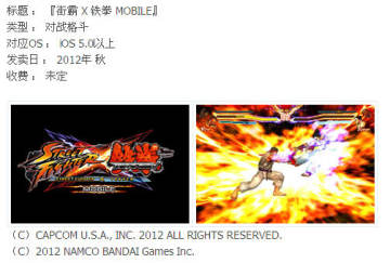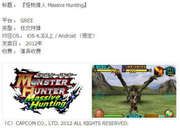 现今手机游戏的崛起是有目共睹的,许多游戏厂商也渐渐将自己旗下的游戏大作推出iOS和安卓版,下面给大家介绍的是Capcom即将推出的五个手机游戏,其中包含《怪物猎人》、《生化危机VS》、《街头霸王X铁拳》等,这些游戏作品都将参加今年的东京电玩展,并且在展会上提供试玩,各位手机游戏爱好者不妨期待一下。