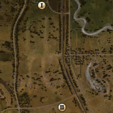 这张图分为公路和铁路两条线,公路的重点在平原,铁路的重点在山。对方平原突破了,则公路防守危险;山拿不下来,则铁路几乎无法突破。若自己使用的是高视野高俯角的车,可以在平原做进攻眼,点亮公路守敌;如果不是的话,保证平原有防守眼的前提下,可以考虑上山。