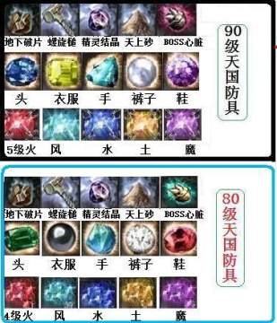 5、服装类直接合成80或90,武器、盾牌类要用80升级至90,属性相差较大