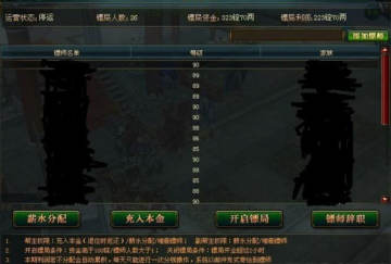 当然,最让人关心的就是国家的镖局了,对于一个不是很火爆的大区来讲,无国砸情况一天国家镖局的收入在260-300D左右的收入,不要以为这些钱真的很多,国王每天的绑银几乎根本不够花,复活的银子一天就是一个非常可观的数字, 大都督 王后 太师 国王拉虎符 以及镖师工资等正常开销去了 剩下的并不是很多,每周或者每天再给家族发放福利,国王也只剩下一小部分钱,当然不排除国王帮家族无福利,拿国王为了赚钱的帮派,毕竟游戏,每个人有每个人的玩法。