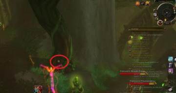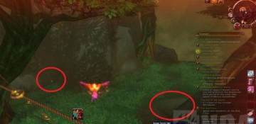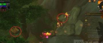 2.找完山上的点直接下来,没坐骑跳的时候注意血量,在树桩的鸟人菊花下面有一个,仔细看可以看到。