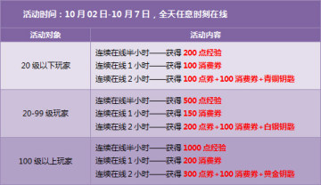 除去“十一”当天活动以外,我们在10.2-10.7期间也为广大玩家准备了丰富好礼,让你的长假天天乐不停!