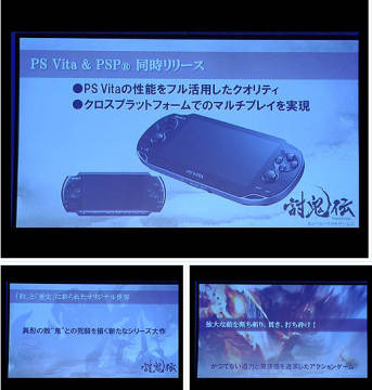 光荣新作《讨鬼传》公布 登入PSV和PSP双平台 来源: 飞翔小编feichenpan 2012/9/19 16:34:24 浏览量:466 光荣公司在索尼TGS 2012的展前发布会上公布了其最新作品《讨鬼传》,预定于2013年登入PSV和PSP双平台。该作由开发“无双系列”闻名的ω-Force工作室制作,游戏的动作手感应该能得到保证,从现场预告片截图来看该作应该是以日本与历史为主题的动作游戏,主人公将与鬼怪展开战斗。 游戏预告片截图: