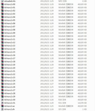 在这个文件夹中会出现1个reloaded.nfo文件和34个以rld-torc2开头命名的文件