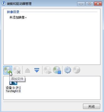 点击添加文件出现打开对话框,找到rld-torc2.iso点打开,这时候在映像目录里会显示您即将要加载的镜像文件rld-torc2.iso的路径,鼠标点选一下这个路径,下方的装载按钮会有灰色变亮