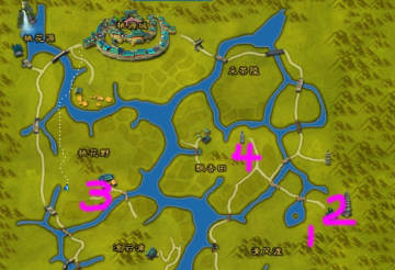 1:首先在6线桃园城接到桃源村危机的隐士任务。然后跑到图中清风渡1的位置。当然需要飞到天空才行!找到仙鹤隐者鹤归