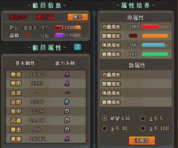 这里要说一下虽然航海的法攻成长看似没有狙击高,但是因为有火焰智力这个神被动,配合现在的长周期战斗,不论是pk还是监狱的前几层,智力对航海实际的法攻收益都是很不错的,特别是对于船医主角,火焰之里的叠加效果也是吃船医buff的,比如火焰智力叠了6层约等于加50%法攻,这个时候加个船医buff,实际法攻会变成(100%+50% )*2=300% 非常恐怖~尤其是打监狱的时候随便就几十回合~ 然后你懂的。。。 总之现阶段输出性航海洗智力还是满ok的,至于敏捷就和其他职业差不多啦