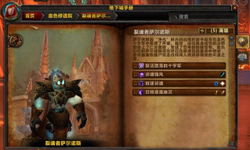 进入副本后的场景类似于以前的墓地,有数组血色怪正在和尸体堆上源源不断复活的亡灵战斗。优先打掉尸体堆,这样才能阻止亡灵怪的刷新。 清理掉小怪,会看到第一个Boss——裂魂者萨尔诺斯,他就站在原先他还叫血法师的时候所在的那个墓穴门口。