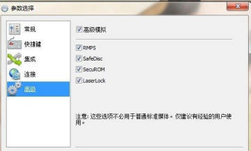 1、需要安装较新版本的DAEMON Tools V4.41其它版本未测试 另外高级选项建议全部开启