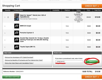 EA公司近来开放了一个20美元代金卷的活动,该代金卷能够直接购买20美元以下的正版游戏,不需要额外付费,当然也可以购买高于20美元的游戏只需要支付剩余部分。
