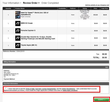 下一步:红框里的 勾勾要 打上.就是同意购买协议,然后点下面的SUBMIT提交就可以了