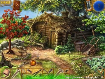 来到作坊,发现磨坊主果然也在沉睡。好,继续我们寻找道具的人生,找完了外面不算完接着去楼上的房子里找。发现有些变质的面粉不能用,不怕,我们自己来制作。到屋外,图示位置放上找到的磨。再把小麦放上,之后使用那个用来敲打小麦的神奇双节棍,可以得到散粒的小麦。在磨上使用小麦,磨坊主醒了。之后又是找木头(这个游戏好多木头啊)。找完木头用木头点一下水车,好家伙,又出来无数的东西让你找。于是找到一个类似猪八戒武器的东西。找齐了这些东西后,进屋子里用小桶在大桶里舀些水。出来对着地上的草先使用镰刀在使用猪八戒武器,得到一个类似笤帚的东西。对着水车使用桶,水车便可以正常运转了。回到磨坊的屋里,点击磨,发现少了些管子,在屋里很容易找到,再点击磨,提示需要询问磨坊主去哪里得到小麦。磨坊主说在国王的储藏室里,先去守卫那得到钥匙。来到储藏室拿到小麦,回到磨坊倒在图示位置,会提示需要东西来接着小麦,出门在房子的右边找到一个卷纸,再回去从来一遍,便可拿到面粉了。