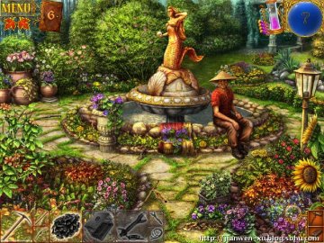 调查紫色的花丛,然后退回园丁的场景。找到铲子和喷水壶以后返回,用铲子铲紫色的花,结果意想不到的事情发生了,一个幽魂出现说除非给她灵魂的安息否则她不会走。回到园丁那,给大花盆种上紫色的花再浇水,园丁醒来,告诉王子沿着灯的方向走。向左走,看到一位音乐家在沉睡,还有一座升高的桥,我们需要把桥降低,把音乐家叫醒。