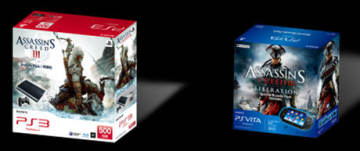 其中PS3同捆套装内含搭载HDD 500GB的新型PS3主机(木炭黑),PS3游戏软件《刺客信条3》(英文版),以及独家追加内容DLC和限量特典《刺客信条3》外套。而PSV同捆套装包括WIFI版PSV主机(晶莹黑)、PSV游戏软件《刺客信条3解放》,特别追加内容DLC及限量特典《刺客信条3解放》屏幕保护贴。