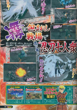 最新一期的动漫杂志Jump公布了《火影忍者疾风传 究极忍者风暴3》的最新情报,除了之前公布的《七龙珠》中孙悟空的服装外,主角漩涡鸣人还有一套武士铠甲装可以选择。在新作中玩家可以将对手打出场景,玩家所操控的角色可以和援护角色一同发动威力巨大的组合攻击,新角色忍刀七人众之一的鬼灯满月确认参战。