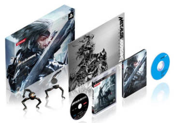 Konami公司近期公布了《合金装备崛起 复仇》的限定版内容,其中包括游戏本体一张,限定版铁盒,合金装备御用画师新川洋司的艺术画集,以及背景音乐CD和三臂眼球哨兵模型。此外游戏预约特典包含一个Cyborg忍者的皮肤DLC,玩家可以在游戏中换装。