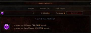 以下是我们在北京时间2012年11月2日下午3点半左右截取的图片,我们以璀璨星芒紫宝石做例子。请注意,亚服目前价格虽然在80万金币左右,但根据系统的交易记录限制,在过去的一天里平均交易价格是31万金币。欧服显示是700百万,但在过去的一天里成交价格约287万金币。