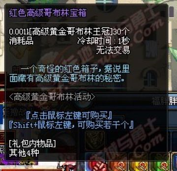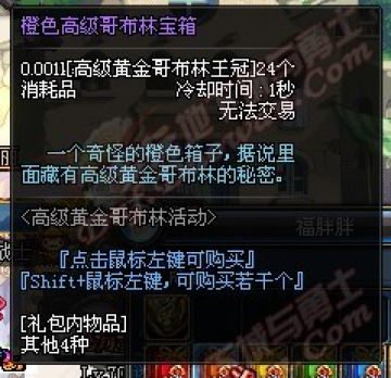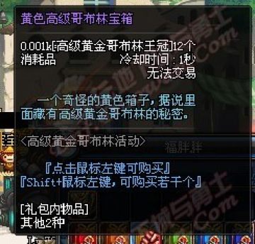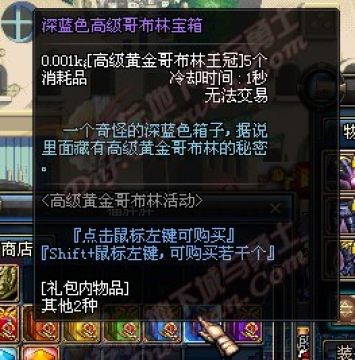 地下城中刷图会碰到黄金哥布林,打败他就可以掉落“高级哥布林王冠”,通过收集王冠可以换取7种颜色的高级哥布林宝箱。