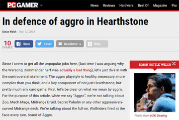 上周,著名的国外游戏媒体PCGAMER刊登了一篇名为《为快攻卡组辩护》的专栏文章。