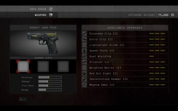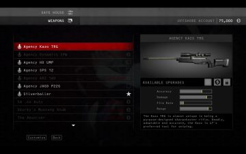《杀手5:赦免》豪华专业版内容包括10英寸高的杀手47号树脂雕像、专业版包含的游戏、硬壳封面的《杀手5:赦免》艺术集、幕后制作花絮的DVD和“Agency Gun-Pack”DLC。而且预购该版本的玩家可以提前体验《狙击手的挑战》这个迷你游戏。以下是豪华版赠送的特工枪械包DLC包含的武器展示。