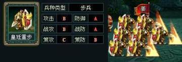 强悍的普通攻防和战法攻防,同时拥有很高的暴击和反击能力,让皇廷重步成为了出场率最高的步兵,如果非要从鸡蛋里挑骨头,我们只能说,皇廷重步综合能力太强而没有专精,而且在对抗强大计策攻击时略显吃力。