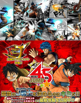 少年Jump45周年纪念游戏《Project Versus》公布 来源: 飞翔小编feichenpan 2012/12/18 10:14:06 浏览量:713 今年是日本动漫杂志少年Jump的45周年,为了纪念这一特殊日子决定推出游戏新作《Project Versus》,该作由《海贼王》的路飞,《七龙珠》的孙悟空以及《美食的俘虏》的阿虏担当主角,他们之间将上演大乱斗比赛,三人进行无差别格斗,想必会十分精彩,龟派气功和橡胶果实的能力究竟谁厉害可见分晓。游戏截图:《Project Versus》预定于2013年发售,登入PS3和PSV平台。