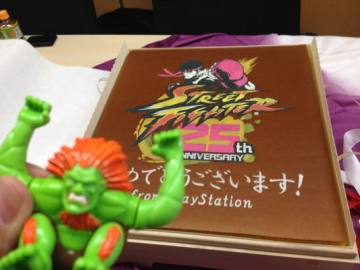 今年是Capcom公司《街头霸王》和《洛克人》系列诞生25周年纪念,街头霸王的制作人小野义德最近在其维特上曝光了索尼电脑娱乐的主题庆祝蛋糕,官方还特意制作了一款名为《街头霸王X洛克人》的怀旧游戏,相信不少玩家现今已经玩到了该作了吧。值得一提的是小野义德还装扮成《街头霸王》经典角色春丽来出席游戏活动,让现场的玩家都忍俊不禁。
