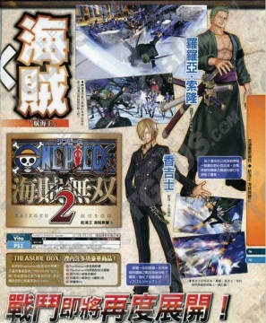 《海贼无双2》草帽海贼团“三大战力”登场 来源: 飞翔小编feichenpan 2013/1/6 13:37:51 浏览量:693 由经典动漫《海贼王》改编的游戏新作《海贼无双2》预定于3月22日发售,登入PS3主机和PSV掌机平台,据悉该作将首度发售中文版。近期中文版FAMI通游戏杂志报道了该作相关信息,为玩家介绍了游戏主角,草帽海贼团的“三大战力”,路飞,索隆和香吉士。本作将以新世界为冒险舞台,玩家将可以使用两年后的路飞一伙成员,使用新的必杀技将敌人一扫而光。值得一提的是雷神艾尼路也是可操作角色。