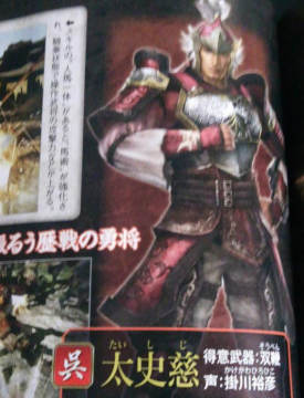 最新一期FAMI通游戏杂志曝光了《真三国无双7》的新情报,其中就曝光了新武将韩当,当然一些旧武将也有新造型公布,比如说吴国的太史慈和丁奉,以及他国势力的袁绍。在新作《真三国无双7》中太史慈换上了一套新的铠甲,尽显其万夫不当之勇,其得意武器为双鞭。而6代才加入的吴国老将丁奉则换上了一套便服,使上了原先的DLC武器断月刃,相信会有不错的表现。而我们的袁绍大将军依旧走华丽路线,换上一套金灿灿的服装,将其四世三公的名门望族烘托的淋漓尽致,其得意武器变更为伸细剑,还不知道与前作有何不同。