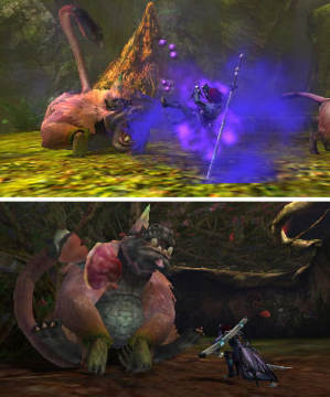 Capcom今天在其官网上公布了《怪物猎人4》的新截图,向玩家展示了新作中桃毛兽王和黄速龙王的实际造型,可以看出这两种新怪物造型十分霸气,攻击手法也很丰富,相信届时会给不少玩家带来阻碍。虽说该作已经确定延期发售到今年夏季,但是相信capcom是为游戏品质而作出的决定,本站也会继续报道有关《怪物猎人4》,还请各位玩家留意。