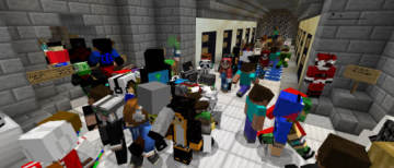 近日,开发者HighlifeTTU把70个《我的世界》服务器组合在一起,并开发了一个大厅系统。这个大厅里面有一片游泳区,一片休闲区,以及一个舞池,它是一个小型的世界,并且能够让玩家从这里穿过不同的传送门来进入不同的服务器,每个传送门旁边都会有公告板来描述该服务器的信息。当然了,玩家也可以哪儿也不去,就在休闲区里闲逛,与大量的其他玩家进行聊天,如果产生了矛盾,你们还可以在拳击场里来一场决斗。开发者还计划在大厅中加入更多其它的迷你游戏活动。