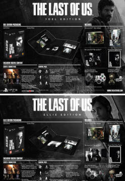 PS3独占大作《末日余生》男女主角限定版公布 来源: 飞翔小编feichenpan 2013/1/23 9:55:12 浏览量:871 索尼欧洲分公司近日公布了PS3独占大作《The Last of Us(末日余生)》双限定版,其中分别为游戏男女主角封面的版本,从限定版内容来看,其中包括游戏特殊封面包装和附赠《小小大星球》人物外观,PS3手柄贴纸,特别版游戏海报,以及迷你画册和《The Last of Us:American Dreams(末日余生:美国之梦)》第一辑漫画和DLC。该限定版将与游戏一同于2013年5月7日发售,售价80欧元,折合人民币约为640圆。