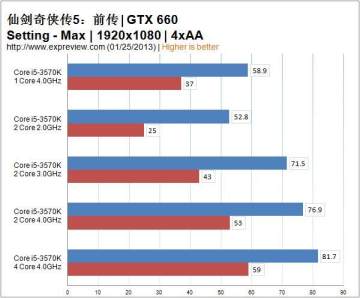 CPU测试中,我们通过降频和关闭核心的方式来模拟不同的处理器,以检验游戏对CPU的需求。另外为了避免显卡出现瓶颈,测试平台配置的是GTX 660显卡。
