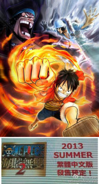 在近期举行的2013台北国际电玩展上,NBGI公司正式确定了《海贼无双2》将推出官方中文版,预定于2013年夏季发售,登入PS3和PSV平台。在本作中玩家将使用草帽海贼团路飞一行人,挑战两年后的新世界。当然游戏也有新人物参战,像暴君熊,雷神艾尼路,月光·莫利亚,幽灵公主佩罗娜等都将登场,敬请期待。