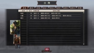 战斗之前,可以确认敌人的参军和秘策,然后配置自己的秘策。这里我们使用陆逊的“捕缚之策”来阻止敌人逃回大本营。参军如果会“鬼谋”的话,那么战斗一开始就会有一定的指挥点加成。