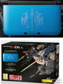 任天堂将在欧美地区发售《火焰纹章 觉醒》3DS XL限定版主机,其机内包含游戏数字版,主机外观采用蓝黑相间的射击,外壳上绘制有游戏中主角配剑和邪神龙,看起来十分霸气。该限定版售价为199英镑,折合人民币约为1879元,预定于2013年4月19日与游戏实体版同步发售,推荐给火焰纹章系列玩家入手收藏