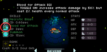 嗜血攻击是BUFF技能,开启后你的每一发炮弹伤害提升50%,但每一下会扣除2%的血量(击中目标时)
