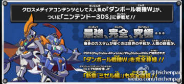 有着游戏业界良心之称的Level 5公司似乎也走上了所谓“完整版再来一发”的路子,其推出了《二之国 完整版》,《雷顿教授与奇迹的假面+》后,最近在其官网上公布了《纸箱战机W完整版》,新作号称最强完全究极,将收录PSP版《纸箱战机W》所有内容,并且追加DLC米歇尔篇,游戏将以完整版的全貌登入3DS平台。